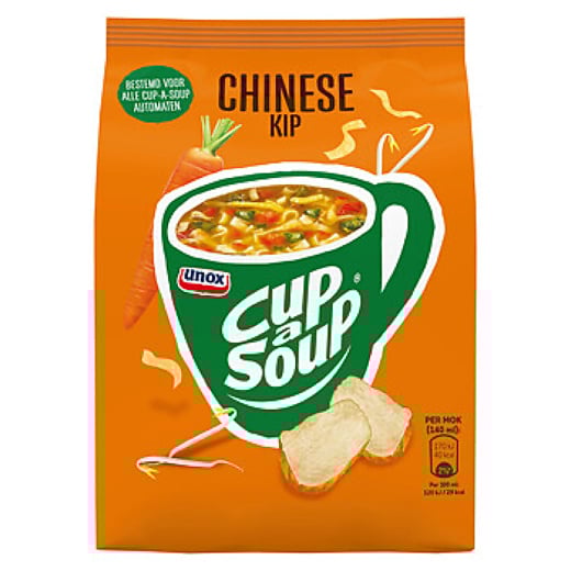 Ingrediënten: Deegwaar 24% (tarwebloem, harde tarwegries, zout), aardappelzetmeel, glucosestroop, zout, aroma, wortel 6,4%, suiker, palmvet, gistextract, kippenvlees 2,3%, prei, specerijen (kurkuma, peterseliewortel), ui, kippenvet 0,2%, bladselderij, antioxidant (E307, E304, E392).